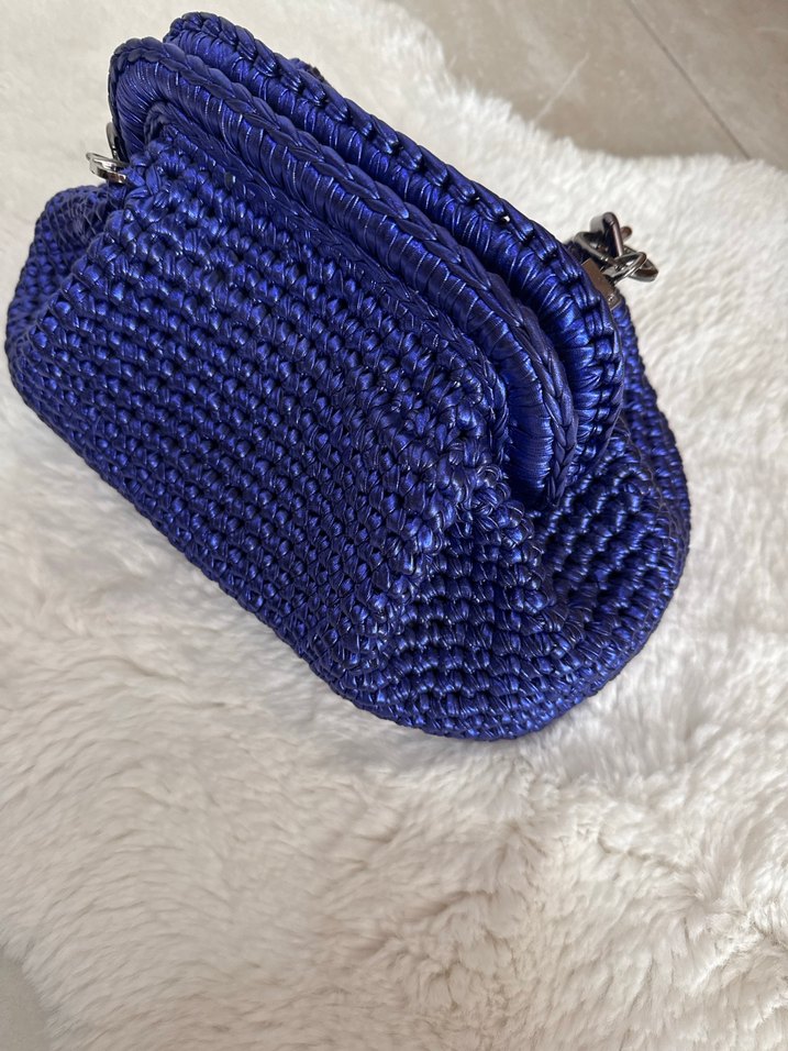 Mavi Örgü Kadın Portföy Çanta