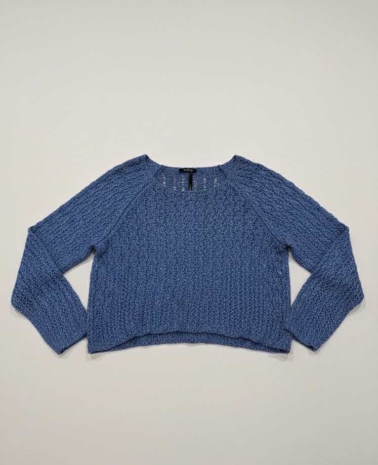 Mavi örgü kumaştan, uzun kollu ve yuvarlak yaka, rahat kesimli kadın kazak. Sade ve konforlu günlük kullanım için uygun. HER BEN BULUNMAKTADIR