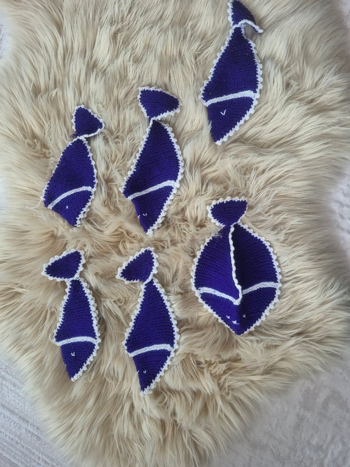 Renkli mavi örgü balık şeklinde kedi oyuncakları, yumuşak ve eğlenceli aksesuarlar.