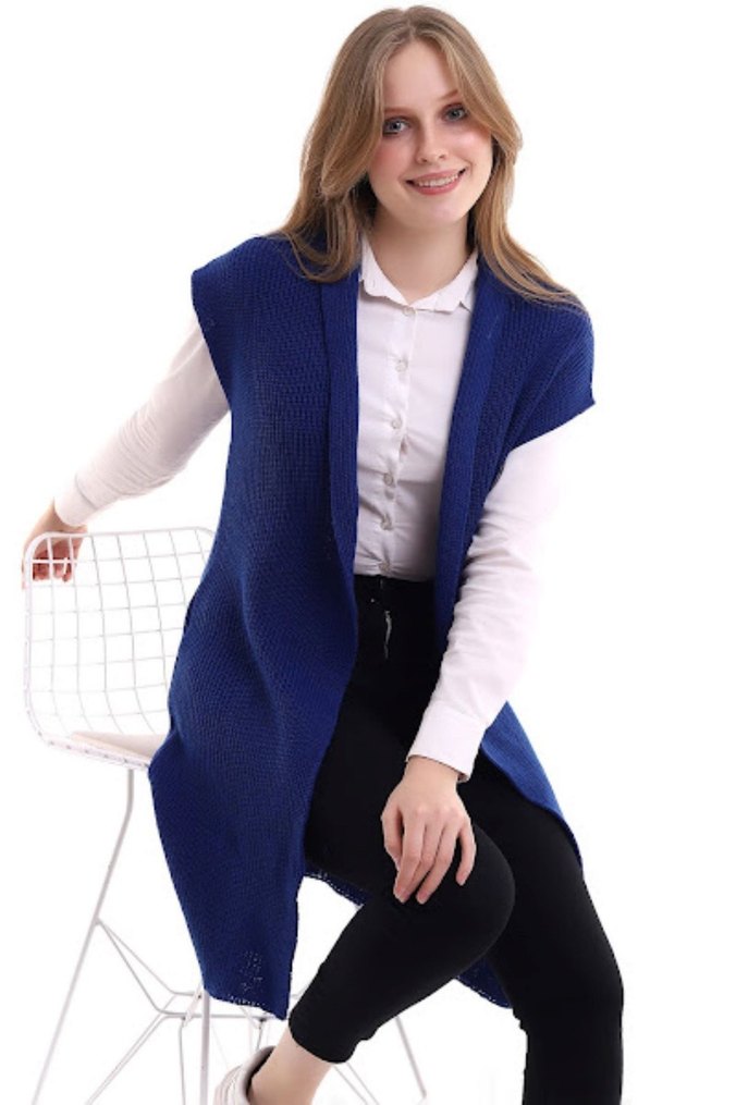 Mavi Örgü Kolsuz Midi Hırka