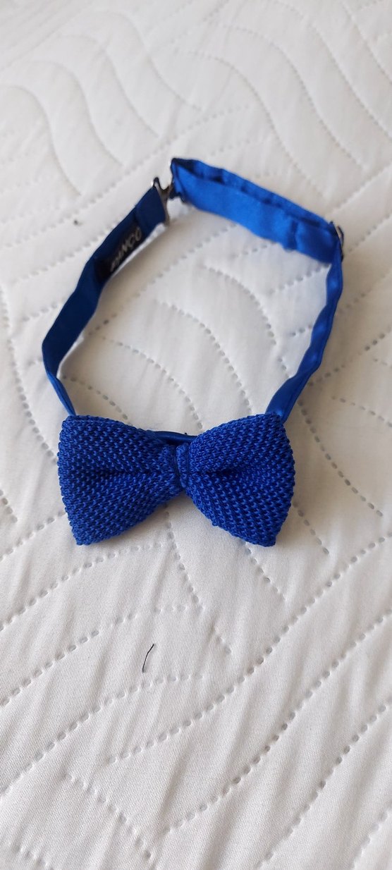 mavi örgü kumaştan yapılmış, dokulu ve canlı sokak stili papyon.