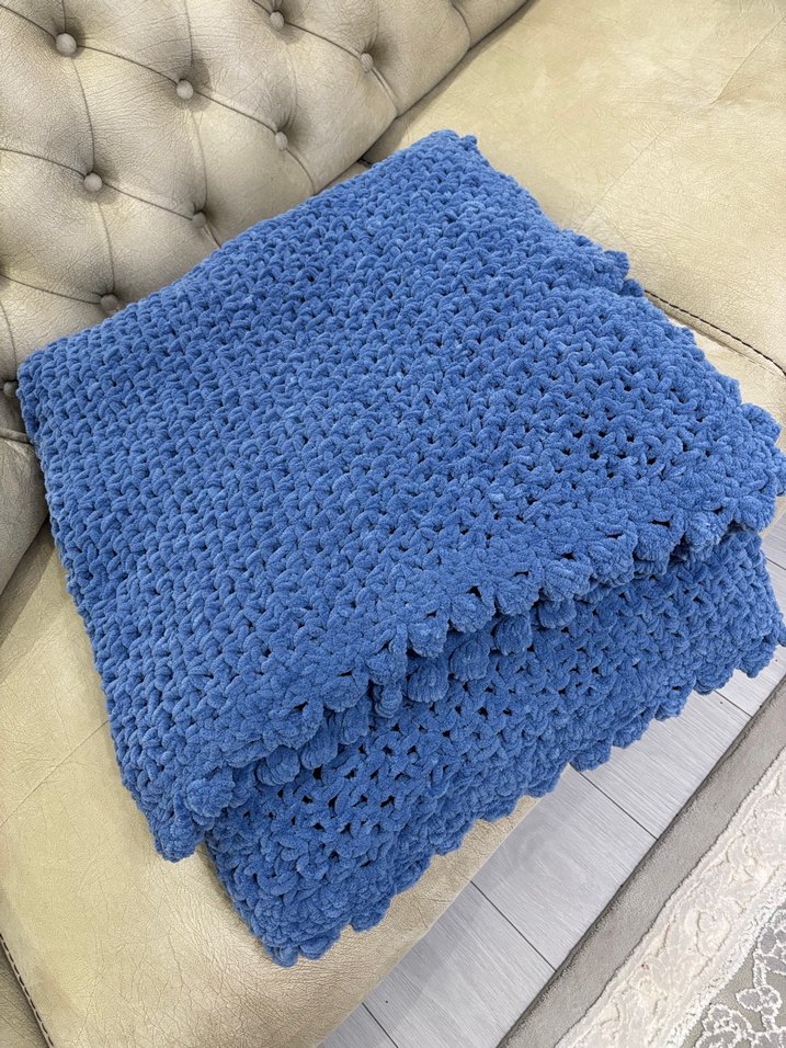 Mavi renkli, örgü dokusuyla yumuşak ve konforlu tek kişilik battaniye, sade ve desensiz tasarıma sahiptir.