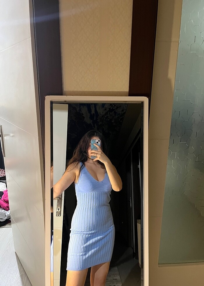 Mavi örme elbise
