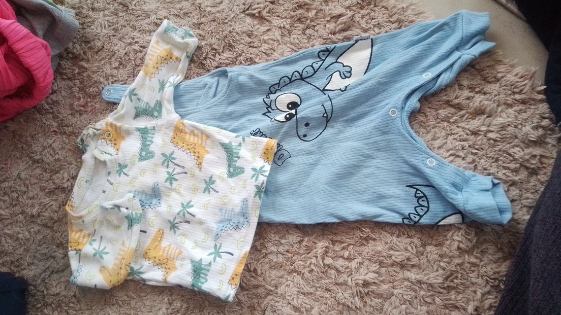 Erkek çocuklar için örme kumaştan yapılmış, gevşek kesim, kısa kollu ve bisiklet yaka pijama. Pastel mavi renkte, eğlenceli dinozor desenleriyle.