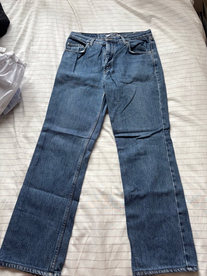 mavi orta bel düz paça vintage denim