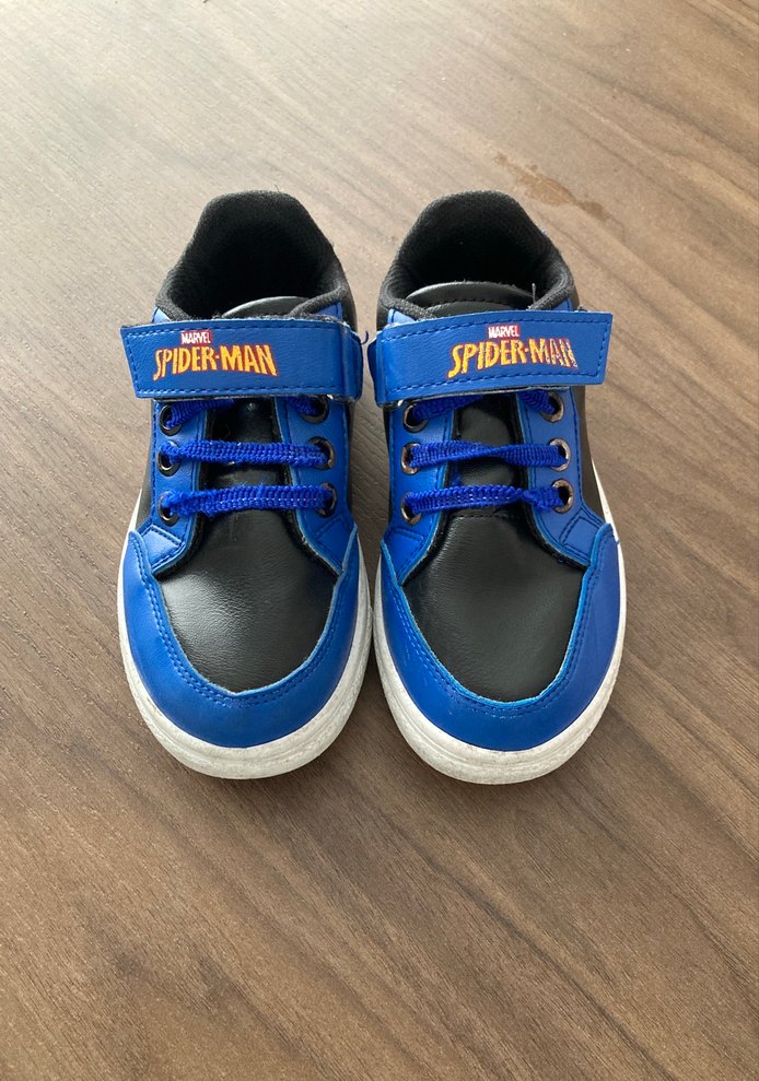 Renkli mavi tasarıma sahip, Örümcek Adam baskılı ve cırt cırtlı erkek çocuk spor ayakkabısı. Kauçuk tabanlı, sokak stili için uygun. ️