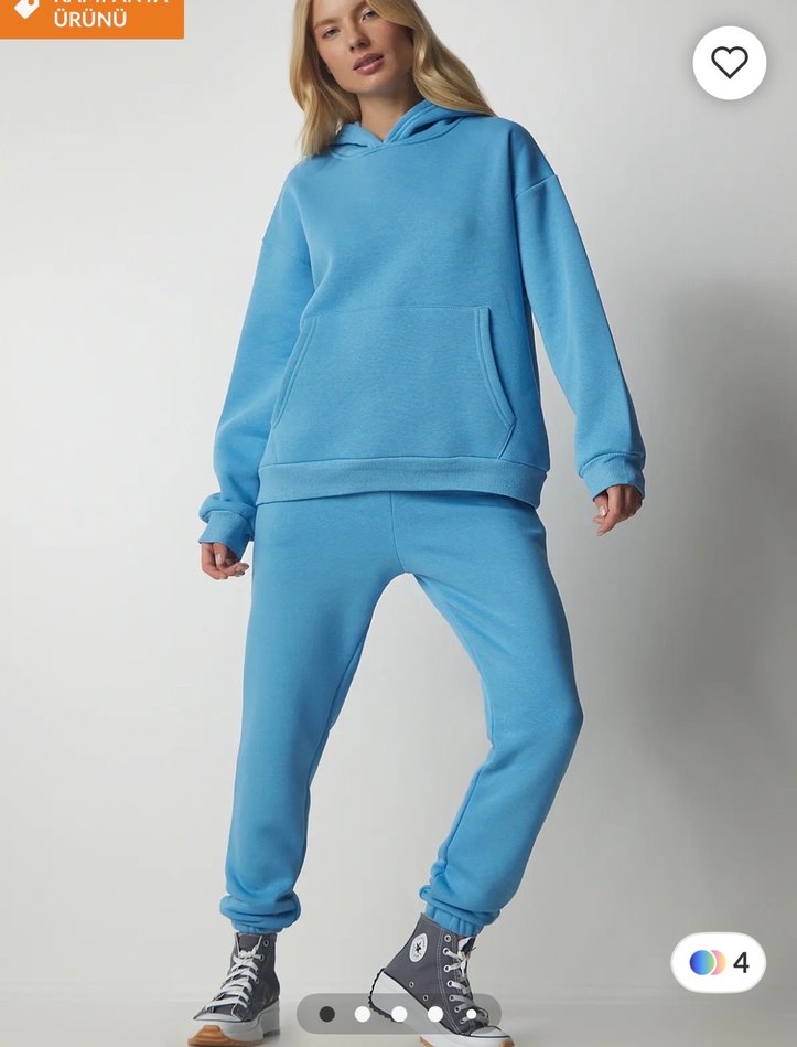 Bu pastel mavi kadın eşofman takımı, rahat oversize kesim, uzun kollu ve bisiklet yaka ile yumuşak ve sıcak kumaştan üretilmiştir. Günlük rahat şıklık için uygundur. ♀️