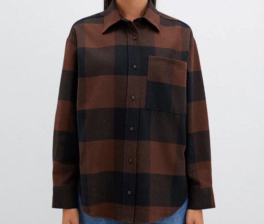 Bol kesim, uzun kollu kahverengi gömlek. Çentikli yaka ve düğmeli kapanışa sahip, günlük kullanıma uygun rahat . lütfen ölçülere bakarak alım yapınız. #mavi#kadıngömlek