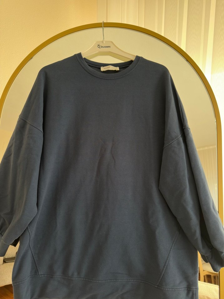 Mavi renkli, yuvarlak yaka ve uzun kollu, bol kesim kadın sweatshirt. Yumuşak ve sıcak kumaştan, normal boyda, desen içermeyen sade tasarım. Rahat ve şık bir günlük tercih. Allday marka