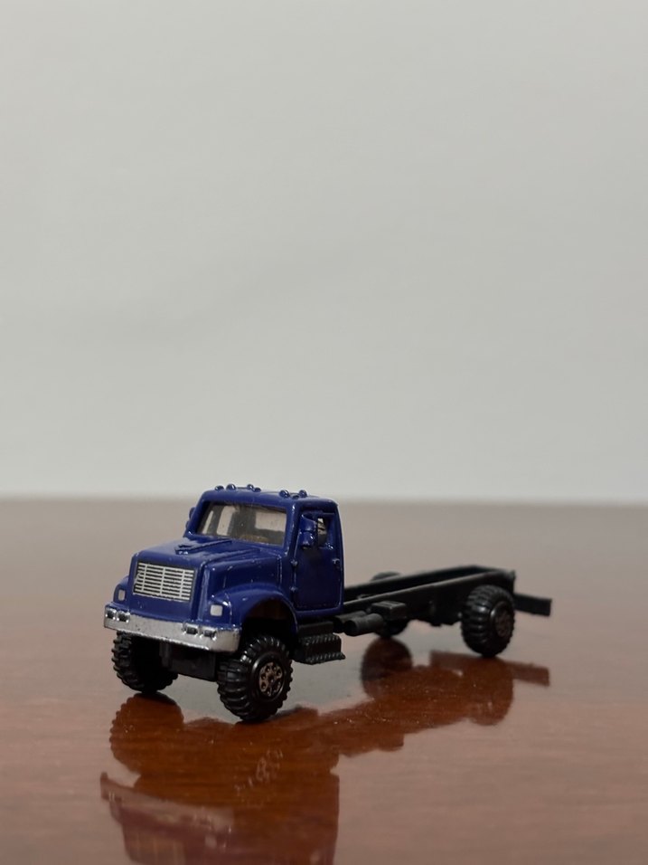 Koyu mavi renkte, detaylı tasarımlı oyuncak kamyon. Sağlam yapısı ve gerçekçi tekerlekleri bulunur.
