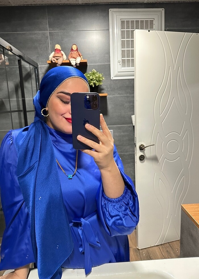 mavi pamuk saten abiye