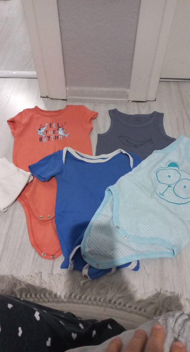Mavi renkli, kolsuz, yuvarlak yakalı ve düğmeli pamuklu bebek body. Rahat ve kullanışlıdır. 1 2 yaş için uygundur