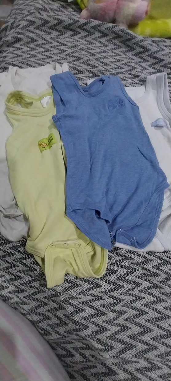 Mavi renkli, kolsuz ve yuvarlak yakalı pamuklu erkek bebek body. Sokak stiline uygun, sade ve rahat bir tasarım.5 adettir kullanıma bağlı ufak lekeleri vardır fiyattı uygun yazdım