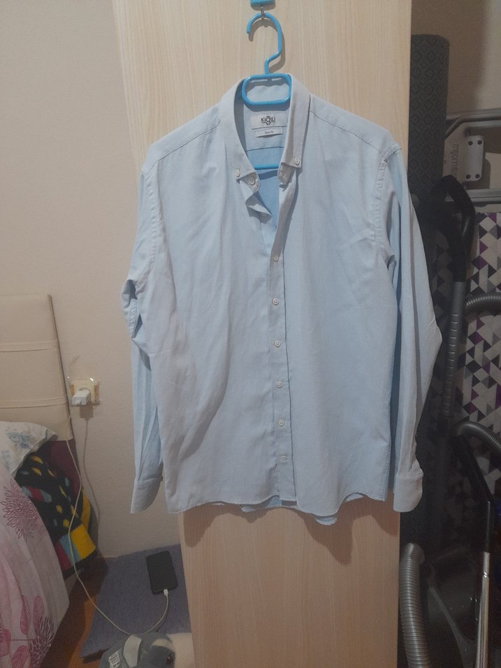Kığılı marka Mavi Pamuklu Erkek Gömlek, Düğmeli, Uzun Kollu