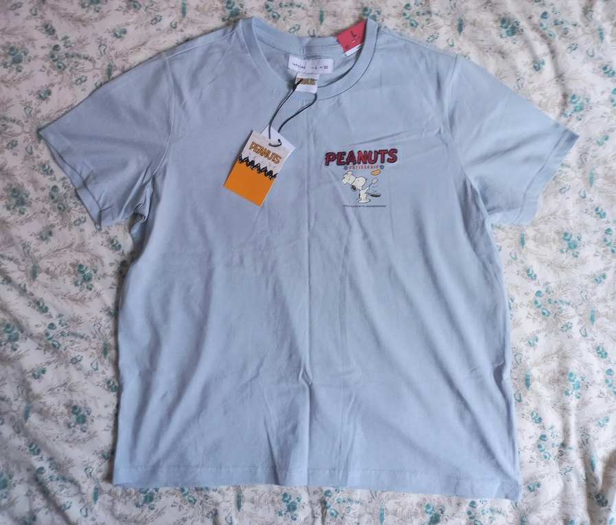Pamuklu, kısa kollu, oversized tişört. Mavi pastel renkte, Peanuts baskısı bulunur. Rahat ve günlük dış mekan kullanımı için uygundur. Etiketi üstünde hic kullanılmadı