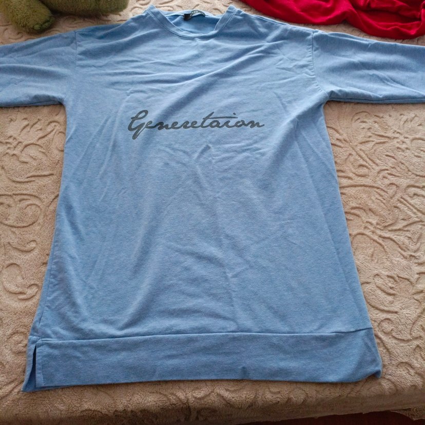 Mavi pamuklu , uzun kollu ve yuvarlak yakalıdır. Rahat kesimi ve baskılı deseniyle günlük