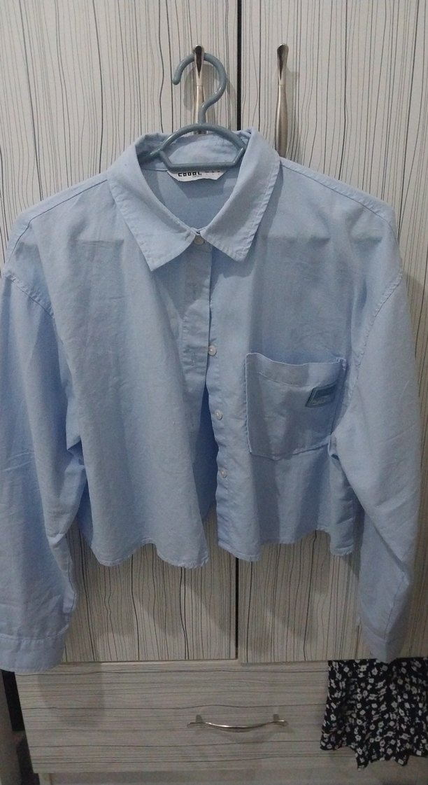 Mavi Pamuklu Uzun Kollu Kadın Gömlek