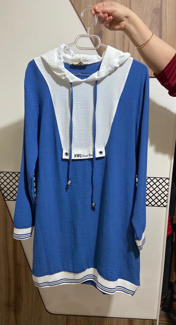 Mavi Pamuklu Uzun Kollu Salaş Tunik