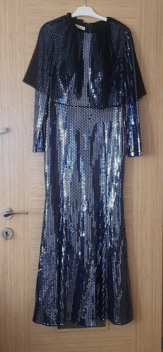 Mavi Parlak Balık Uzun Abiye Elbise
