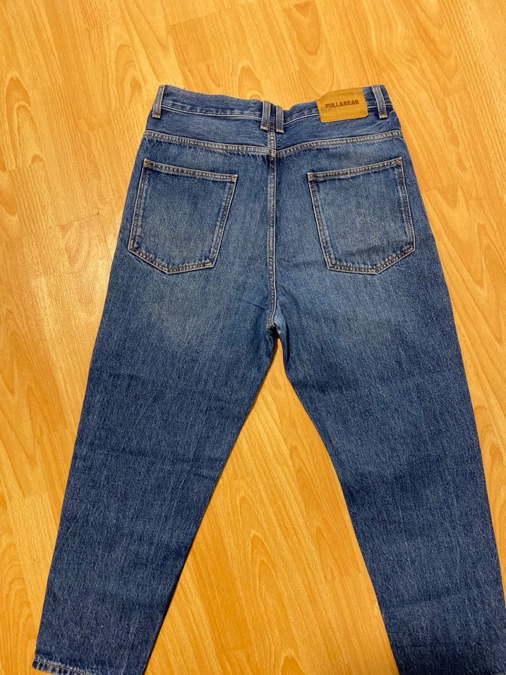 Bu mavi parlak denim kot pantolonlar, rahat kesimi ve midi boyuyla günlük kullanıma uygun sade ve şık bir sokak stili sunar.