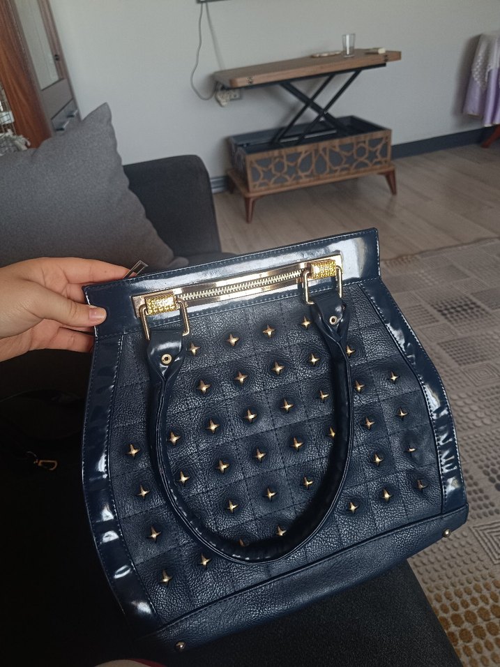 Mavi Parlak Deri Tokalı Kadın Çanta