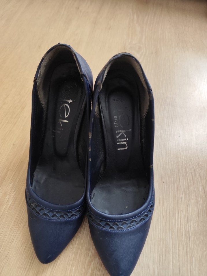 Mavi parlak dolgu topuklu, tokalı kadın stilettolar, bohem tarzıyla romantik akşamlar için uygun. Deri malzemeden üretilmiştir.