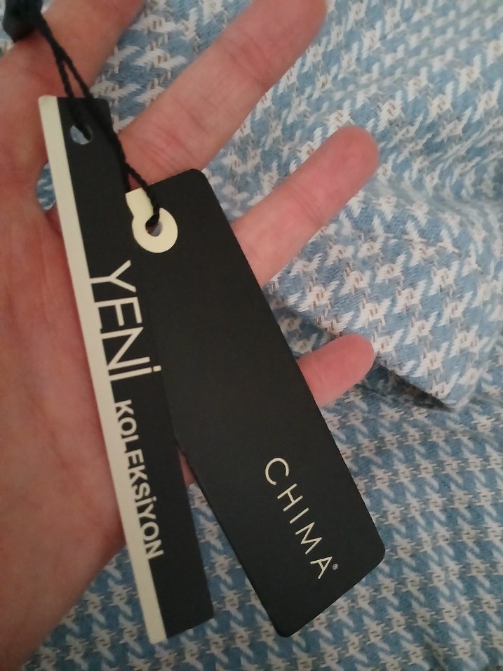 Parlak mavi renkte, bohem tarzda erkek rozeti. CHIMA markalı, rahat ve şık görünüm sağlar.