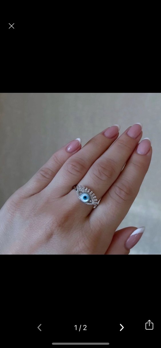 Bohem tarzda, açık mavi göz figürlü ve parlak detaylı kadın yüzüğü, günlük kullanıma uygundur. Retro ve ışıltılı bir görünüm sunar.