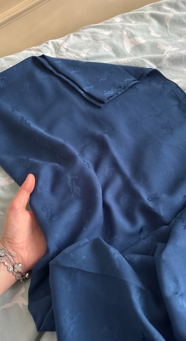 Mavi Parlak İpek Görünümlü Kadın Şal