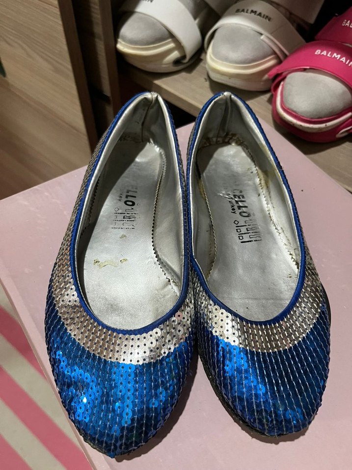 Mavi parlak pul detaylı, kauçuk kadın babet. Parti ve karşı kültür tarzına uygun. her giyside ayri tarz duruyor sorun dökülme bozulma yoktur marka temsilidir