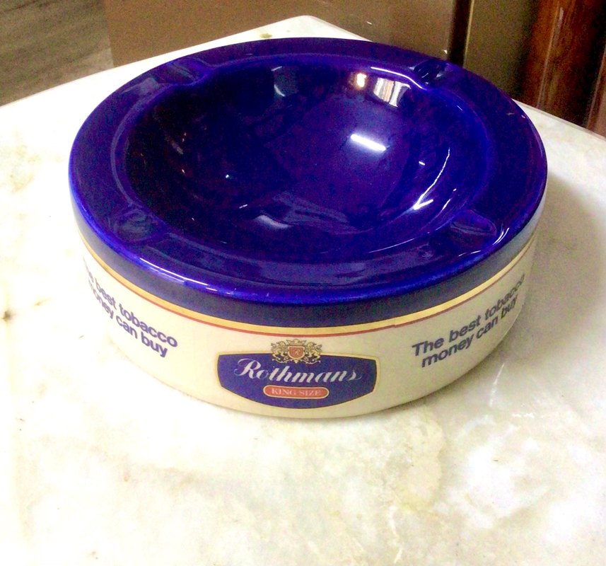 Mavi parlak renkte, Rothmans baskılı, yuvarlak ve derin tasarımlı küllük. 21 cm çap 7 cm yükseklik çok temiz ve nadir bulunmaktadır