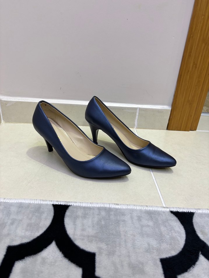 Mavi Parlak Stiletto Topuklu Kadın Ayakkabı