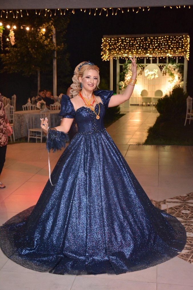 Mavi Parlak Straplez Uzun Abiye