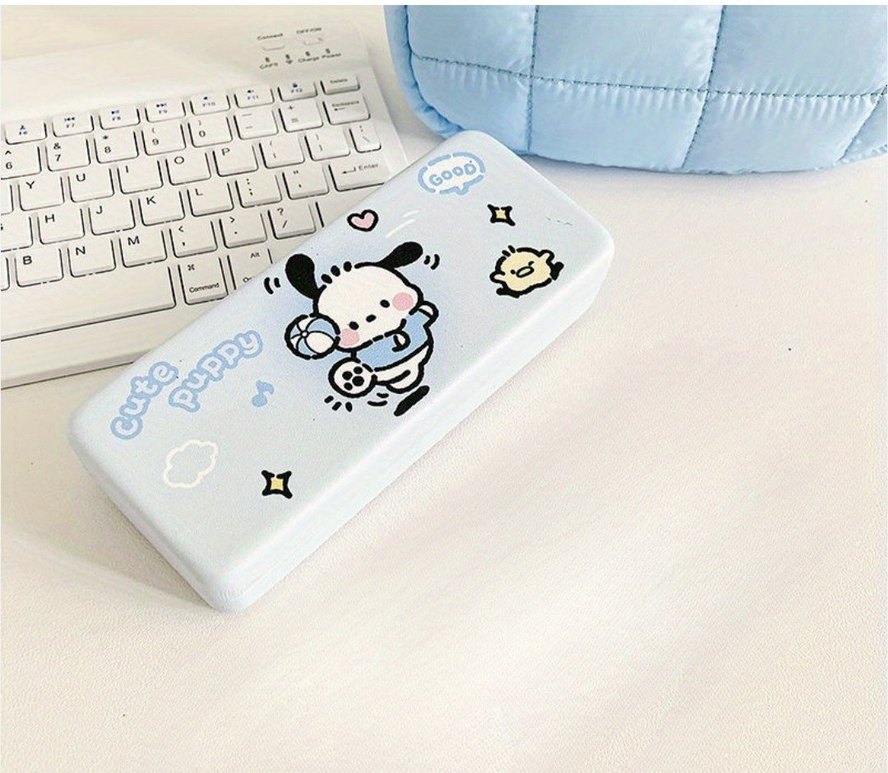 Parlak mavi tonlarda, çizgi karakter ve dekoratif öğelerle süslenmiş telefon kılıfı.