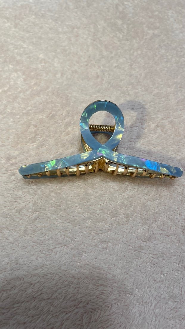 Parlak mavi plastikten yapılmış, tokalı tasarıma sahip kadın saç tokası. Bohem ve retro tarzı yansıtır, Paris tarzına uygun.