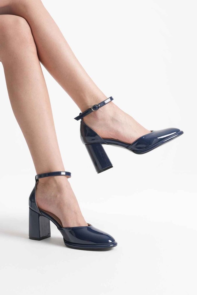 Lacivert Rugan Kadın Topuklu Ayakkabı TR18MS04C