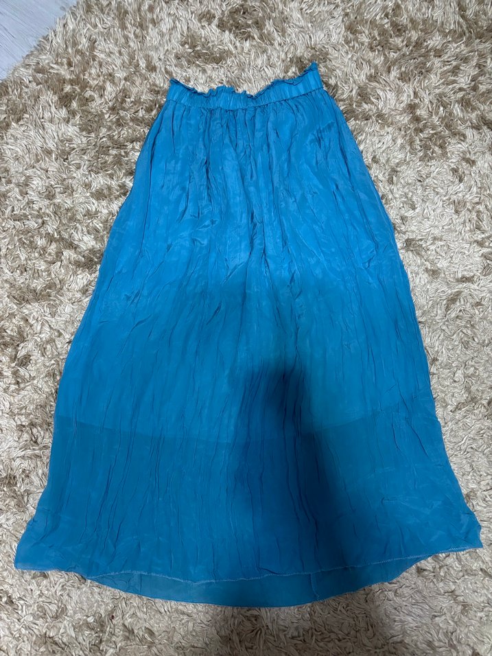 Mavi parlak uzun etek, Kraş modeli astarlı ince parlak şifon kumaştan hiç kullanılmadı sıfır ihtiyaç fazlası olduğu için satışta. Butikten alınmıştır. Marka temsili 36-40 beden herkese uygun