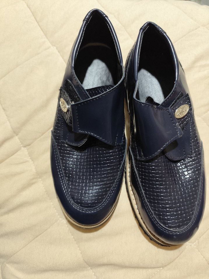 Parlak mavi yılan desenli, tokalı ve dolgu topuklu erkek çocuk klasik ayakkabıdır, trend sokak stili için uygundur.