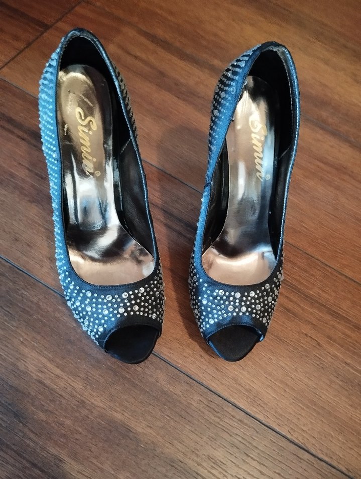 Mavi parlak yılan desenli platform topuklu ayakkabılar, payet detaylı ve kauçuk malzemeden. Gotik ve şık bir romantik akşam için uygundur.