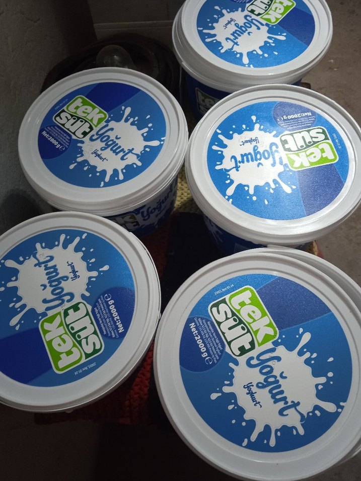 Beşli set halinde mavi parlak yoğurt kapları, sızdırmaz kapaklı, süt ürünleri saklamak için uygun.