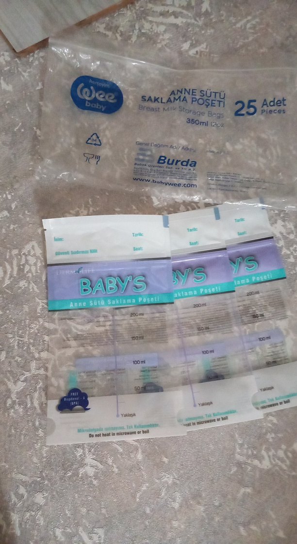 350ml kapasiteye sahip, pastel mavi renkli 3 adet anne sütü saklama poşeti. Ölçü işaretleri ve güvenli kapak içerir.