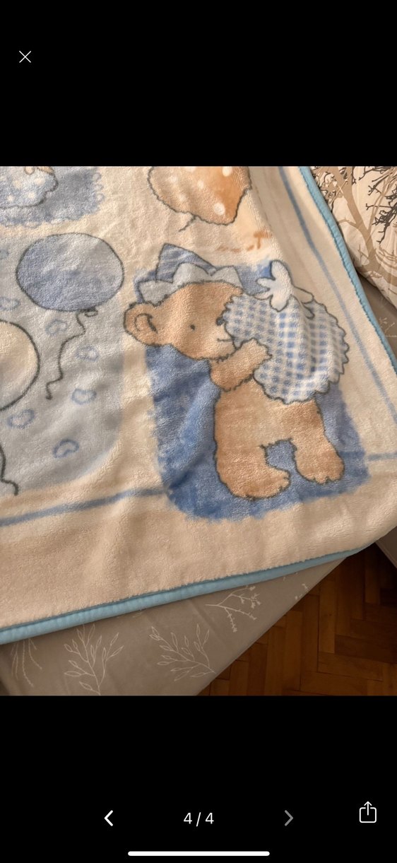 Yumuşak ve sıcak kumaştan yapılmış, mavi pastel baskılı ayıcık ve balon desenli çocuk battaniyesi. Rahatlık ve sıcaklık sağlar.