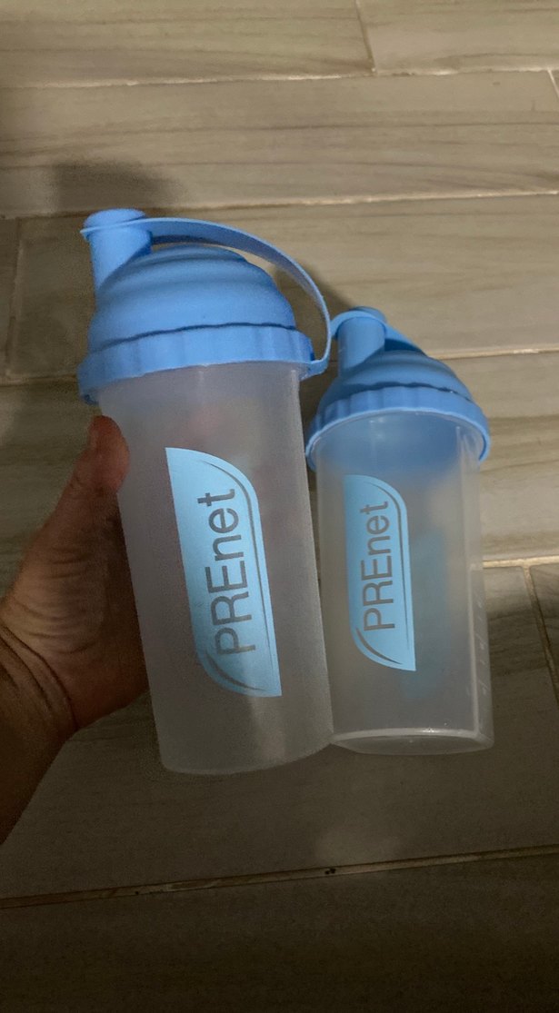 Pastel mavi renkte, kapaklı ve kolay kavranabilen iki adet bebek biberon seti.