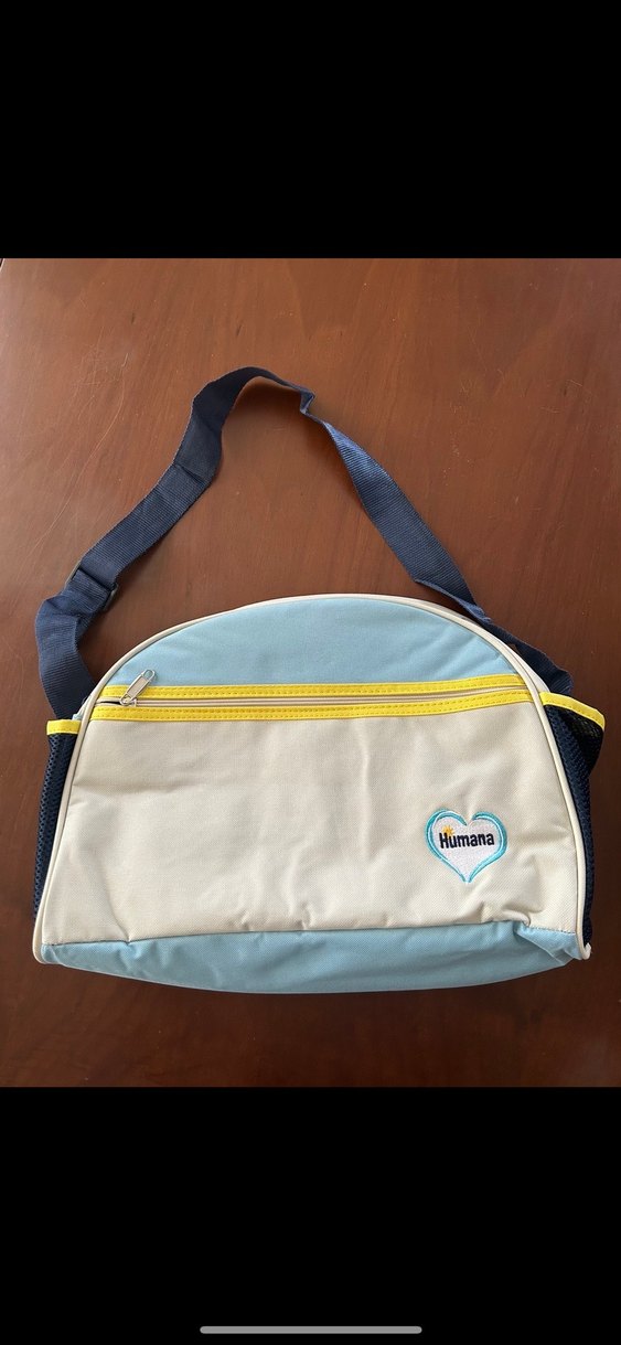 Pastel mavi renkli, baskılı bebek çantasıdır. Sarı fermuar detayları, ayarlanabilir askısı ve yan file cepleri vardır. Bebek eşyalarınızı taşımak için uygundur.