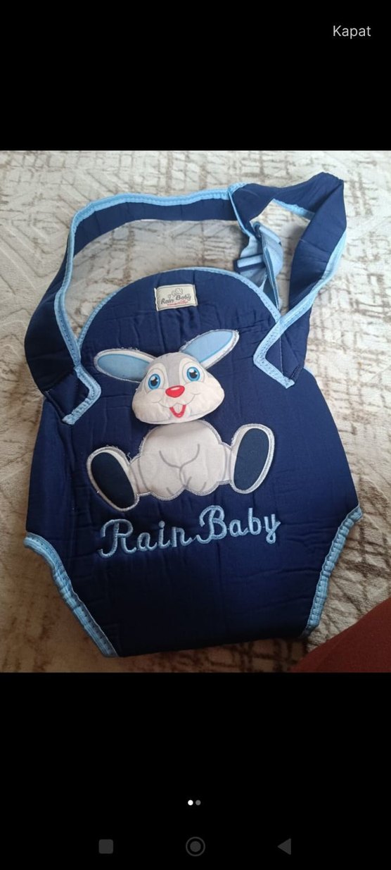 Pastel mavi renkte, sevimli tavşan desenli ve RainSaby marka nakışlı yumuşak bebek taşıyıcı. Bebeğinizi rahat taşımanız için uygundur.