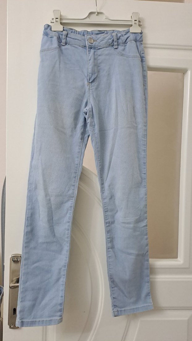 Mavi pastel renkte, normal boy midi kesim ve regular fit cocuk denim pantolon, günlük kullanıma uygun rahat ve şık bir stil sunar.
