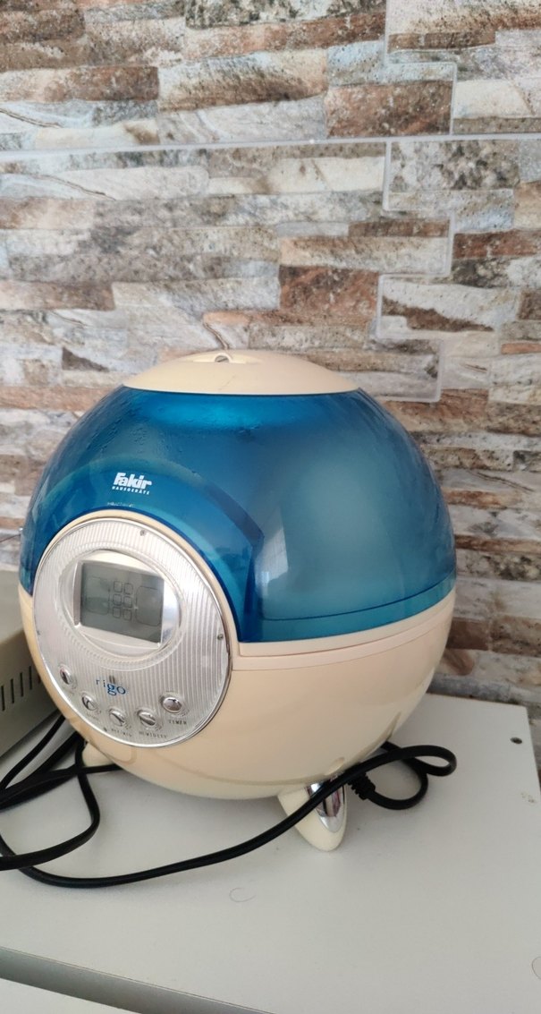 Dijital ekran ve kontrol düğmelerine sahip yuvarlak mavi pastel hava temizleyici ve nemlendirici, iç mekan havasını iyileştirir ve nem sağlar. sağlam hiç bir sorunu yoktur bebek vardı diye aldık klima odayı çok kurutuyor du bebeğin boğazları kuruyor diye biz çok faydasını gördük kızım şuanda 3 yaşına girdi o yüzden satıyoruz