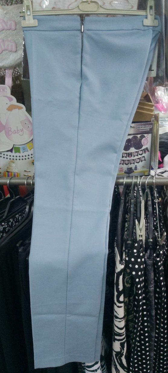 Fitted kesim, midi boy, elastik bel bantlı mavi pastel pamuklu kumaş pantolon. Günlük rahat kullanıma uygun, desen içermeyen sade tasarım.