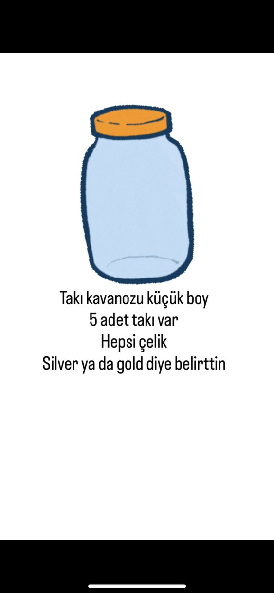 Pastel mavi renkte küçük boy takı kavanozu. İçinde 5 adet çelik takı bulunur, gümüş veya altın tonlarında. İçeriği atılmaz fotoğraf istemeyin .