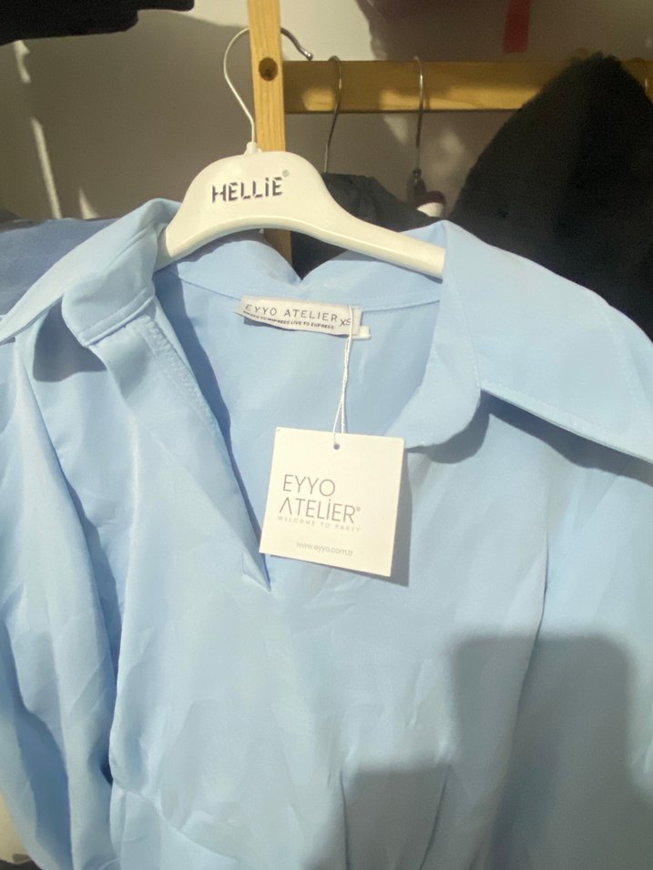 Mavi Pastel Mini Gömlek Düğmeli Yaka elbise
